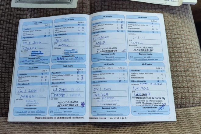 The vehicle has been driven on Finnish roads its entire life. The included maintenance book shows that the car has been regularly maintained, with oil changes every 10 thousand km. Over the past 9 years, the car has driven 4000 km. In the summer of 2025, work was carried out on the engine, and in some places the paintwork has been renewed (the roof, doors, hatch and window surrounds are under the original paint).